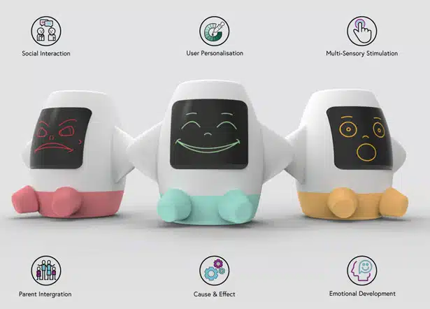 La recherche menée par le designer a mis en évidence qu’il existe souvent une barrière de communication entre un enfant autiste et ses parents. C’est le cas lorsque l’enfant est incapable d’exprimer ce qu’il ressent à cause d’un manque de compréhension émotionnelle. AMICA offre donc une plate-forme où cette barrière de communication peut être comblée. Elle devient un compagnon pour l’enfant et un système de soutien pour les parents.